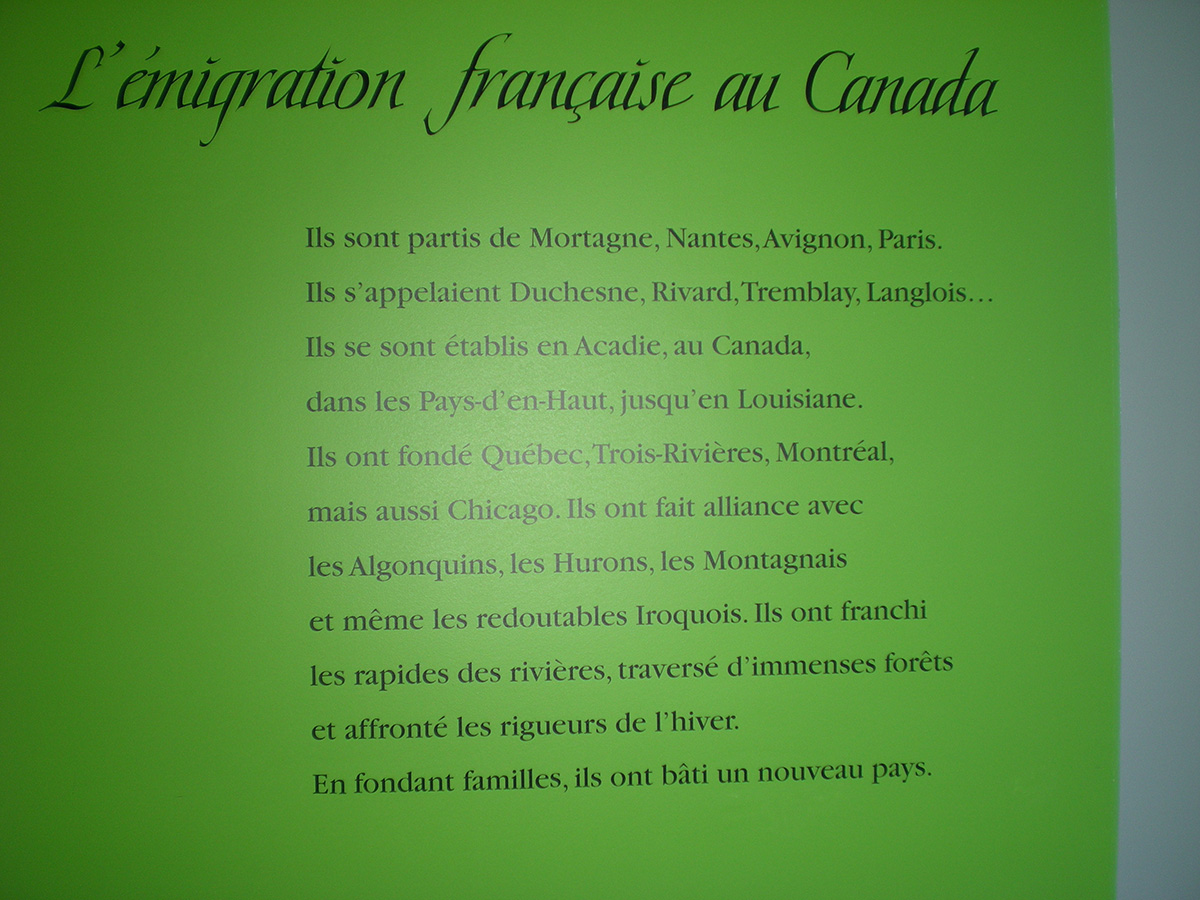 On the 400th anniversary of the founding of Acadie, the Canadian government made a significant investment in a number of projects in France. One of them was the Maison de l'Émigration française au Canada, which was constructed in Tourouvre, in the Perche region to the west of Paris. The town had a close connection with emigration to the St Lawrence valley, which seemed at odds with the anniversary of Acadie.